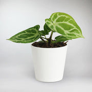 L’Anthurium ‘Silver Blush’ est un hybride à feuillage velouté, aux reflets argentés délicats sur des feuilles vert foncé en forme de cœur. Même de petite taille, il impressionne par son aspect chatoyant et ses nervures nettes. Maintenez-le au chaud, dans une bonne humidité ambiante et à la lumière vive indirecte. Arrosez-le lorsque la surface du terreau est légèrement sèche et utilisez un substrat aéré riche en écorce.