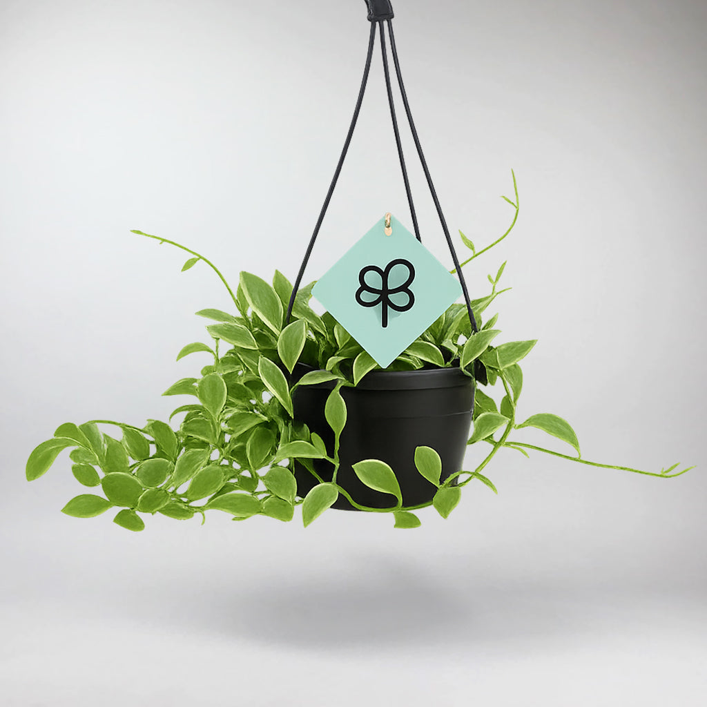La plante fourmi panachée, aussi appelée Dischidia Oiantha Variegata, arbore des feuilles en forme de cuillère aux détails blanc crème. Cette plante grimpante compacte est idéale pour les étagères ensoleillées et les coins détente, apportant un charme contemporain et une touche de verdure apaisante à tout intérieur.